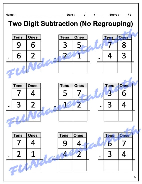 Math Subtraction with Regrouping, 2 Digit Subtraction Worksheet #1 There are two different ways of subtraction. Subtraction Without Regrouping. When subtracting, we subtract the smaller number from the larger number. While ...